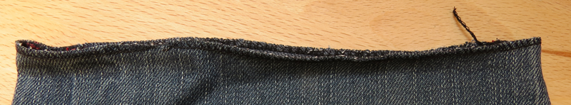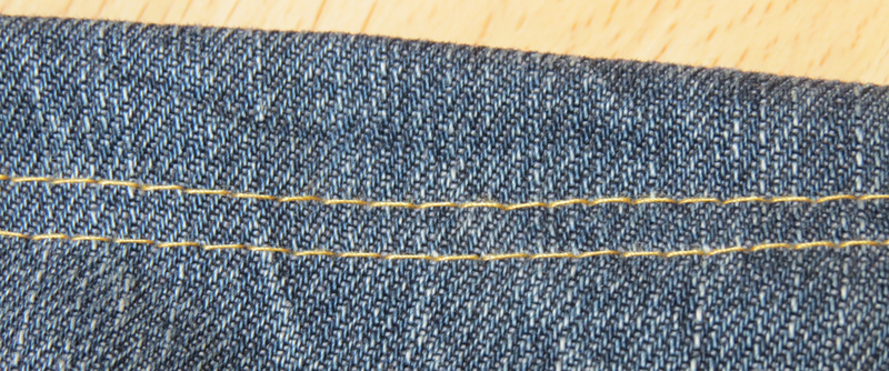 - Niť v barvě švů džínsů