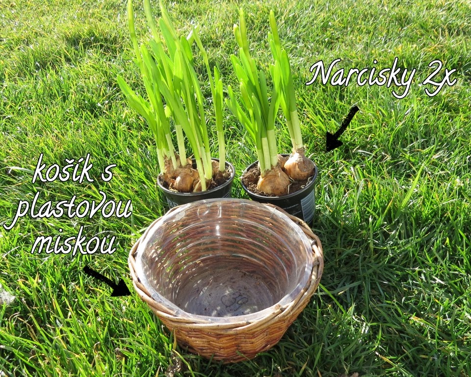Vše jsem nakupovala mimo hlavní město, což cenu mého nákupu nepochybně ovlivnilo. Pokud doma naleznete nějaký pěkný košík nebo květináč, do kterého lze narcisky zasadit, rozhodně ušetříte. Doporučuji vám, oběhnout si několik zahradnictví, můžete tak ušetřit i 20 Kč za květináč s narciskami.