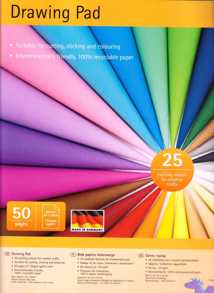 | Blok s barevnými papíry (struktura) 24x34cm, 135 g/m2, 50 listů, | Blok s barevnými tvrdými papíry A4, 10 listů, 180 g/m2, určený pro: kresbu, fix a lepení (koláž) |
